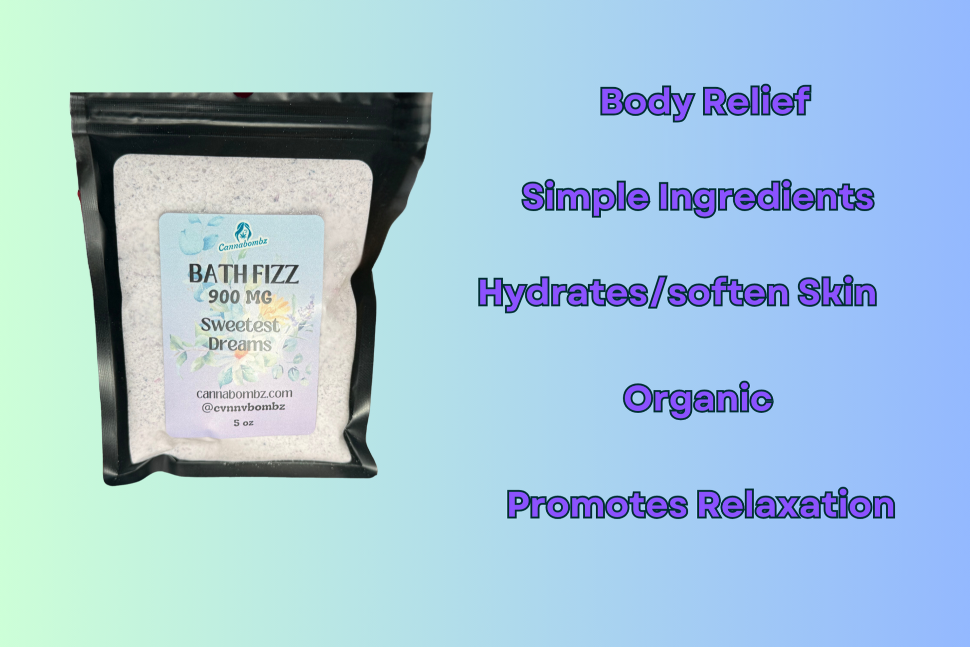 Ingredients: organic full-spectrum CBD, organic baking soda, organic corn starch, organic citric acid, Epsom salt, organic essential oils.